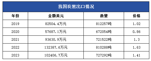 炭黑出口量和出口金額雙雙下降