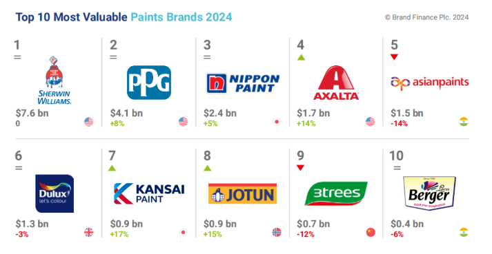 2024全球最具價(jià)值涂料品牌榜單揭曉