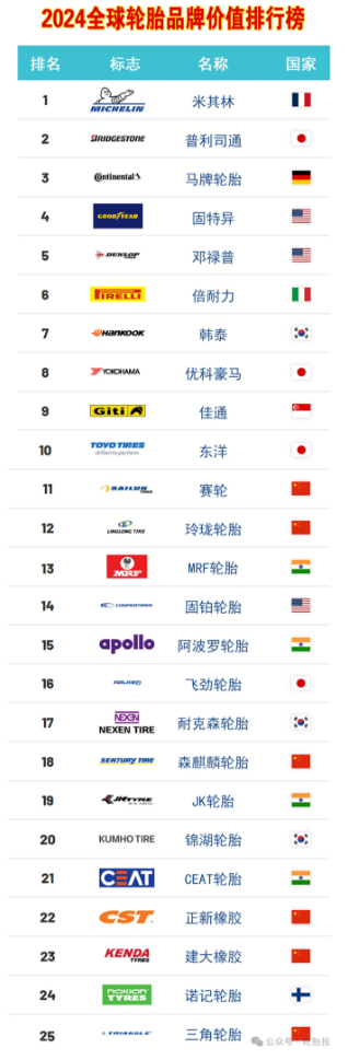 全球輪胎品牌價(jià)值25強(qiáng)出爐:看各國(guó)品牌如何角逐