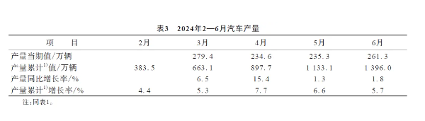 6月份,我國汽車產(chǎn)量為261.3萬輛,同比增長率為1.8%;1—6月累計(jì)產(chǎn)量為1396.0萬輛,累計(jì)增長率為5.7%。