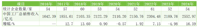 表1 2016~2024年度中國境內(nèi)輪胎排名企業(yè)銷售收入變化情況