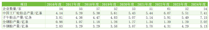 表2 2016~2024年度中國輪胎排名企業(yè)產(chǎn)量情況