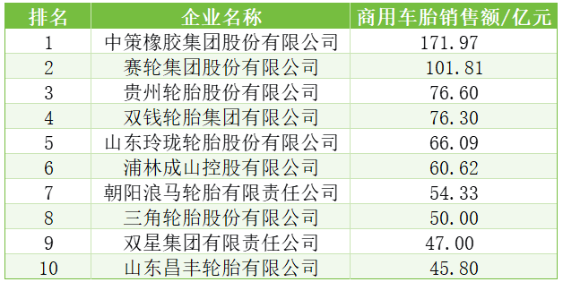 表11 2024年度中國商用車輪胎企業(yè)10強