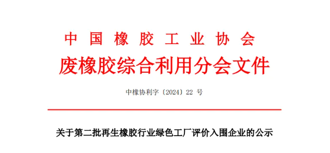 再生橡膠行業(yè)第二批綠色工廠入圍企業(yè)的公示