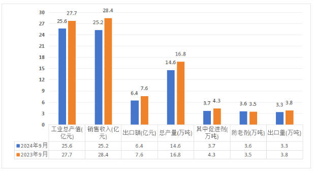 橡膠助劑 | 2024年1-9月總產(chǎn)量125.3萬噸!同比增長4.1%