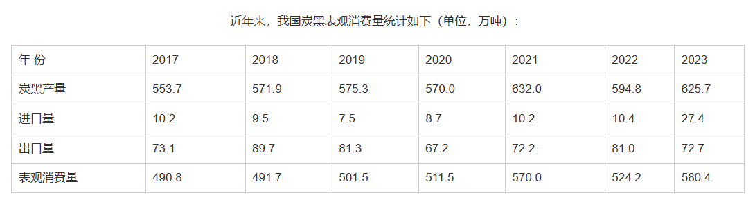 2023年我國(guó)炭黑表觀消費(fèi)量580.4萬(wàn)噸