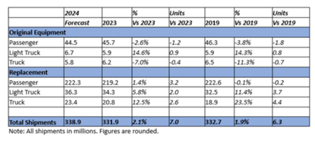 USTMA上調(diào)2024年美國(guó)輪胎出貨量預(yù)測(cè)