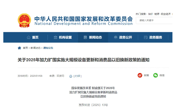 【炭黑產(chǎn)業(yè)網(wǎng)】1月9日消息,國家發(fā)展改革委與財(cái)政部聯(lián)合發(fā)布了《關(guān)于2025年加力擴(kuò)圍實(shí)施大規(guī)模設(shè)備更新和消費(fèi)品以舊換新政策的通知》。此通知旨在2025年加力推進(jìn)設(shè)備更新、擴(kuò)圍支持消費(fèi)品以舊換新,加快提升回收循環(huán)利用水平,充分發(fā)揮標(biāo)準(zhǔn)提升牽引作用。