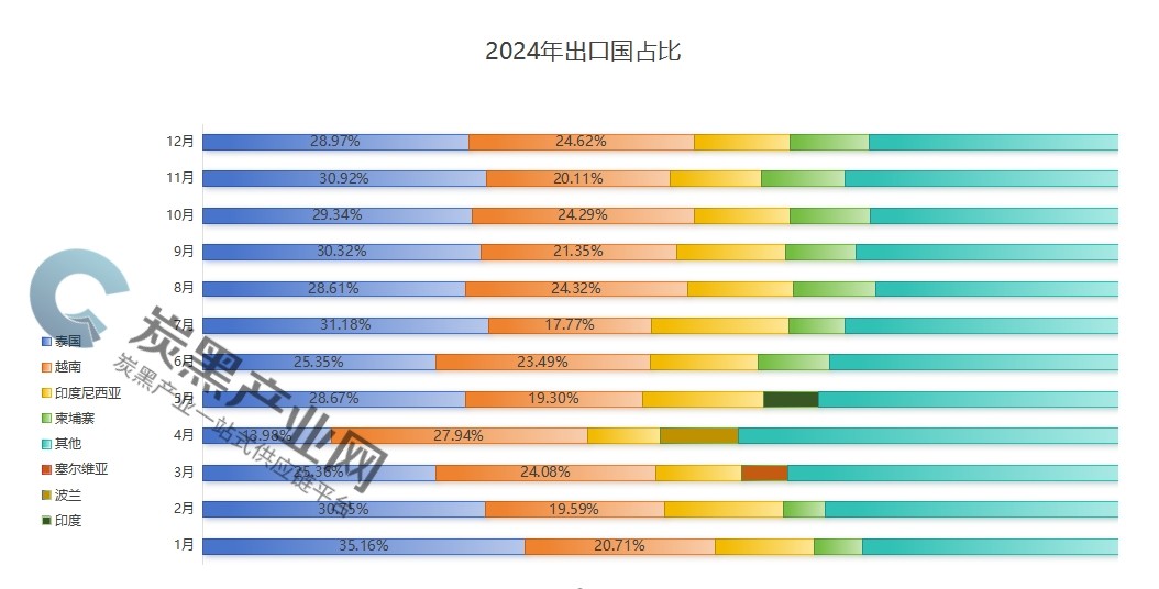 2024 年炭黑出口數(shù)據(jù)分析(按貿(mào)易伙伴)