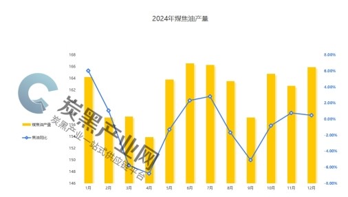 2024年1-12月焦炭累計產(chǎn)量48927萬噸,同比減少0.8%。以煤焦油產(chǎn)出率來核算,我國1-12月份煤焦油產(chǎn)量在1957.08萬噸,比去年同期減少0.67%。