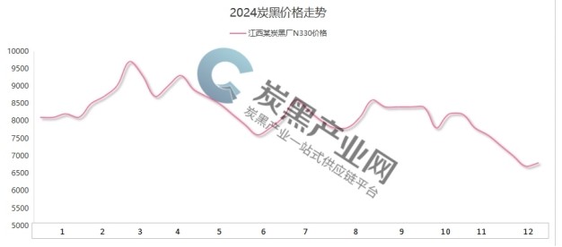 2024年炭黑市場價格呈現(xiàn)高開低走的態(tài)勢。與去年同期相比,今年炭黑價格則表現(xiàn)出更為平穩(wěn)緩和的走勢。這一變化主要受到原材料高溫煤焦油漲跌幅度收窄及炭黑市場供大于求的雙重影響。自3月份達到年內(nèi)高點以來,炭黑價格一直震蕩下行,直至年底。據(jù)炭黑產(chǎn)業(yè)網(wǎng)監(jiān)測數(shù)據(jù)顯示,江西某主流炭黑廠的N330產(chǎn)品價格區(qū)間在6700-9700元/噸之間,其中最高價出現(xiàn)在3月份,而最低價則出現(xiàn)在12月份。
