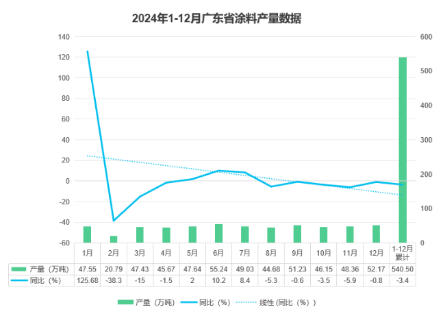 其中,2024年廣東省涂料總產(chǎn)量為540.50萬噸,同比下降3.4%,受房地產(chǎn)市場影響較大,建筑涂料及木器涂料處于下滑態(tài)勢,工業(yè)涂料有所增長。廣東作為涂料大省,總體發(fā)展平穩(wěn),但運行壓力依然較大,存在的結(jié)構(gòu)矛盾問題依然較多。