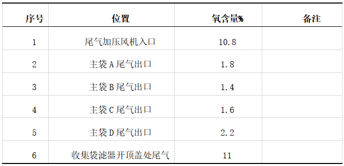 表1 設(shè)備管道尾氣氧含量監(jiān)測結(jié)果