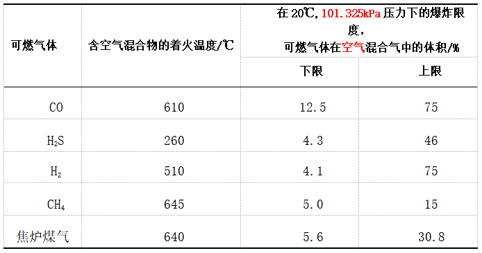 表2 可燃氣在常溫常壓下的爆炸限度