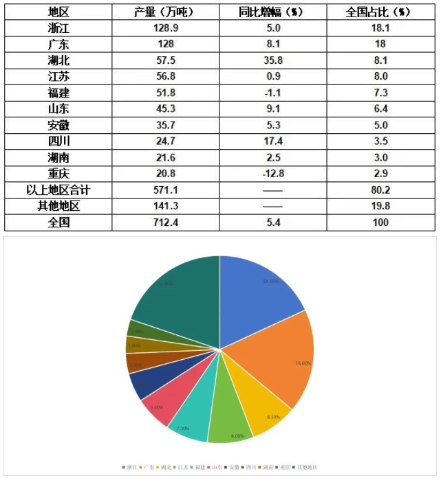 2025年3月,塑料制品產(chǎn)量全國(guó)排名前十的省份依次為浙江、廣東、湖北、江蘇、福建、山東、安徽、四川、湖南、重慶。
