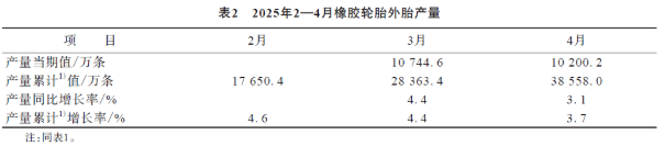 2025年2—4月我國(guó)合成橡膠、輪胎和汽車產(chǎn)量
