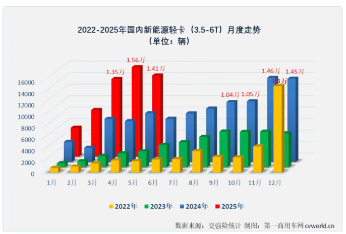 2025年的“金三銀四”旺季,新能源輕卡連續(xù)兩個月銷量破萬,并在4月份創(chuàng)造了史上最高的單月銷量(1.56萬輛)。