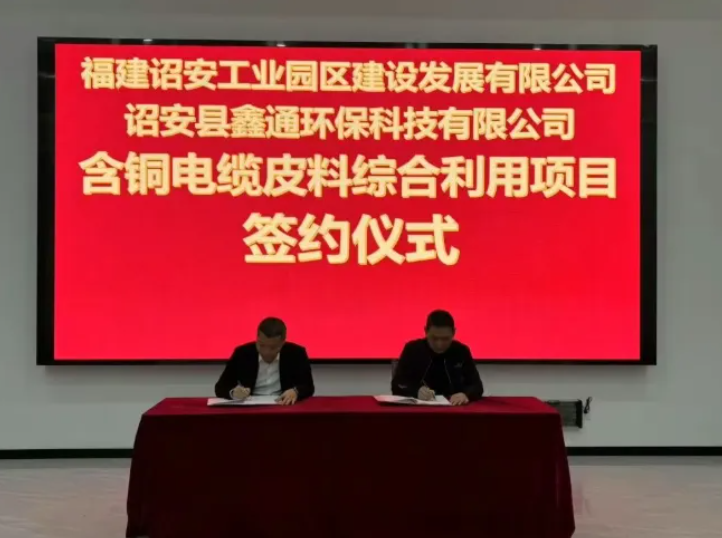1月16日,詔安工業(yè)園區(qū)與詔安縣鑫通環(huán)保科技有限公司成功簽約含銅電纜皮料綜合利用項(xiàng)目。