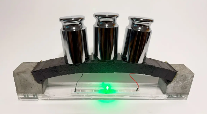 為直觀展示 EC3 的實(shí)用潛力,科研團(tuán)隊(duì)特別建造了一個(gè)小型 EC3 拱門結(jié)構(gòu)。測(cè)試結(jié)果顯示,這個(gè)拱門不僅能正常承受重量、發(fā)揮建筑結(jié)構(gòu)功能,還能為 LED 燈供電;更值得關(guān)注的是,當(dāng)拱門結(jié)構(gòu)受到壓力時(shí),LED 燈會(huì)出現(xiàn)閃爍現(xiàn)象,研究人員認(rèn)為這一特性未來(lái)或可用于建筑健康狀況的實(shí)時(shí)監(jiān)測(cè),進(jìn)一步拓展材料的應(yīng)用邊界。
