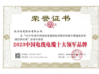 【炭黑產(chǎn)業(yè)網(wǎng)】7月6日消息,杭州電纜股份有限公司在近日舉辦的“2023年度中國電線電纜招標采購評價推介暨遴選優(yōu)秀誠信供應(yīng)商”活動中再度嶄露頭角,蟬聯(lián)2023中國電線電纜十大領(lǐng)軍品牌稱號,彰顯其卓越的業(yè)績和品牌實