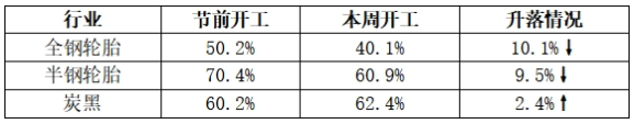 輪胎及炭黑行業(yè)開工情況統(tǒng)計表
