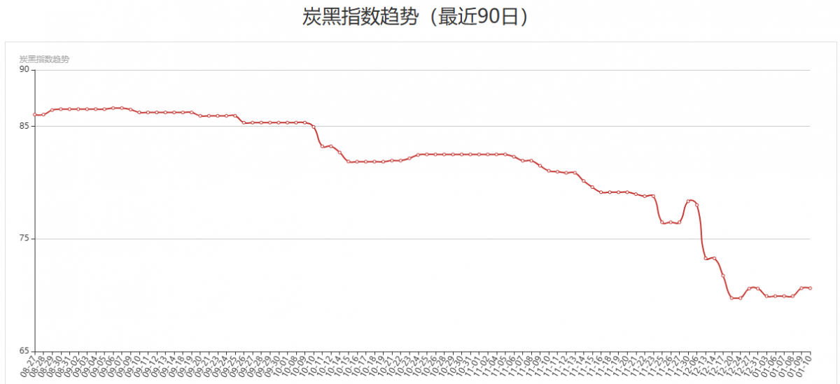 炭黑產(chǎn)業(yè)網(wǎng)根據(jù)市場N330/N220/N550三個牌號最新市場成交價格,并分別按一、二、三線品牌權(quán)重分配計算后得出今日最新炭黑指數(shù)為69.92,與之前相比炭黑指數(shù)依然維持在下行區(qū)間。