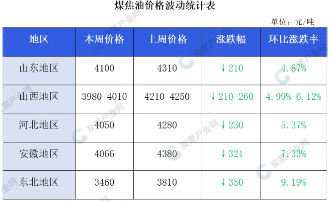 本周,煤焦油價(jià)格普遍跌幅在210-260元/噸之間,部分高者降幅超過了300元/噸。原料端市場(chǎng)利空影響,炭黑下游輪胎企業(yè)新單商談僵持打壓,橡膠制品企業(yè)采買平平,今日炭黑局部新單報(bào)價(jià)下降200-300元。供需支撐減弱,煤焦油寬幅下調(diào)