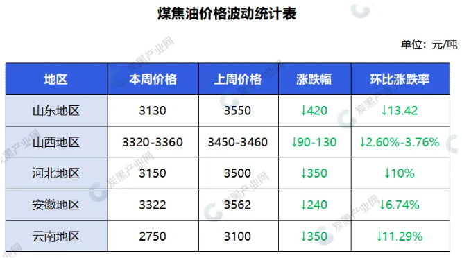 下游偏弱運(yùn)行,煤焦油低價(jià)再刷新