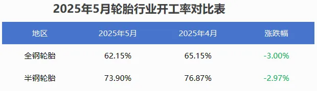本月輪胎開工較上月小幅下滑,月初恰逢五一假期,疊加關(guān)稅影響下行業(yè)出口受限,多數(shù)廠家安排檢修放假停產(chǎn)計(jì)劃,檢修時(shí)間在4-7天左右,平均檢修時(shí)長(zhǎng)較去年增加。月初關(guān)稅政策下,輪胎行業(yè)整體出口訂單受限,新訂單跟進(jìn)有限,終端需求市場(chǎng)疲軟,部分企業(yè)庫(kù)存壓力較大,通過降負(fù)荷調(diào)控減緩庫(kù)存壓力。