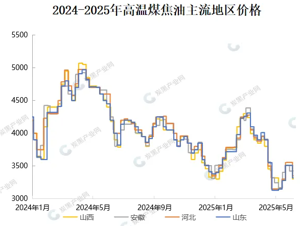 本周高溫煤焦油價格寬幅下行,市場主流價格重新回落至3300-3350元/噸,整體跌幅在98-220元/噸。本次價格弱勢下行主因是深加工行業(yè)入市壓價,存在前期低價庫存,采買積極性偏弱。煤焦油價格下調(diào)對市場心態(tài)產(chǎn)生明顯利空影響,煤焦油供應(yīng)充足,焦化企業(yè)開工維持穩(wěn)定,需求暫時剛需訂單有限。