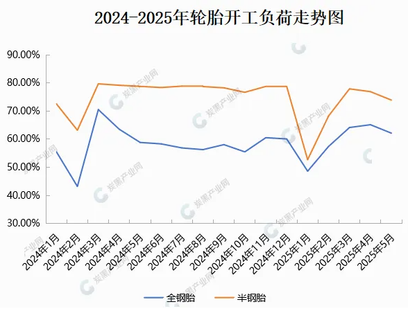 需求:半鋼胎開工負(fù)荷為74.89%,全鋼胎開工負(fù)荷為62.75%。