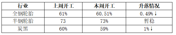 輪胎及炭黑行業(yè)開工情況統(tǒng)計表